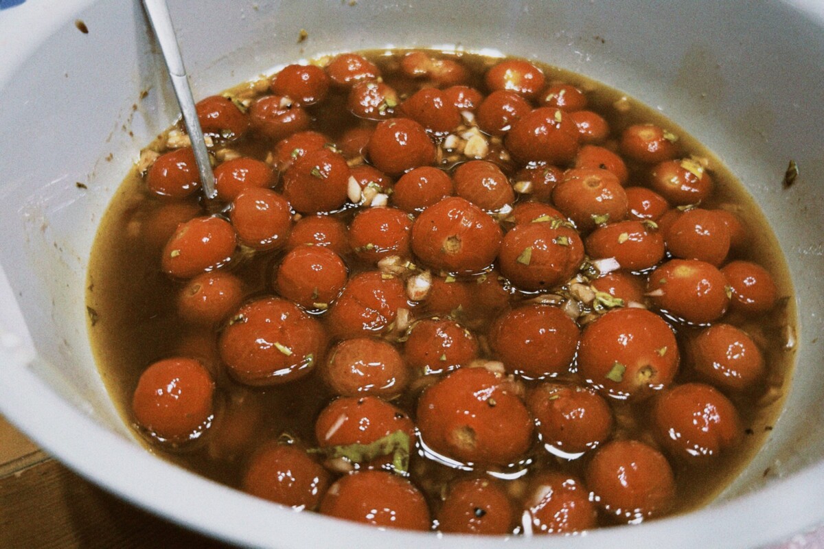 옥상 텃밭에서 수확한 토마토로 마리네이드를 만들었습니다.