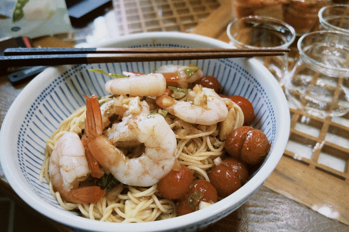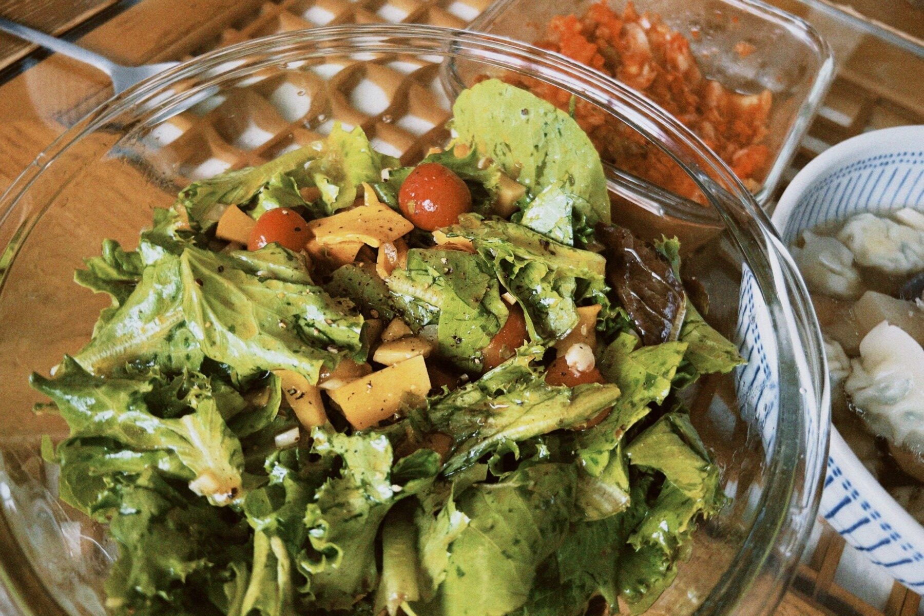 이렇게 만든 방울토마토 마리네이드는 다음날 바질 새우 방울토마토 냉파스타가, 또 텃밭에서 바로 따온 상추샐러드가 되어 훌륭한 우리집 점심이 되었습니다.