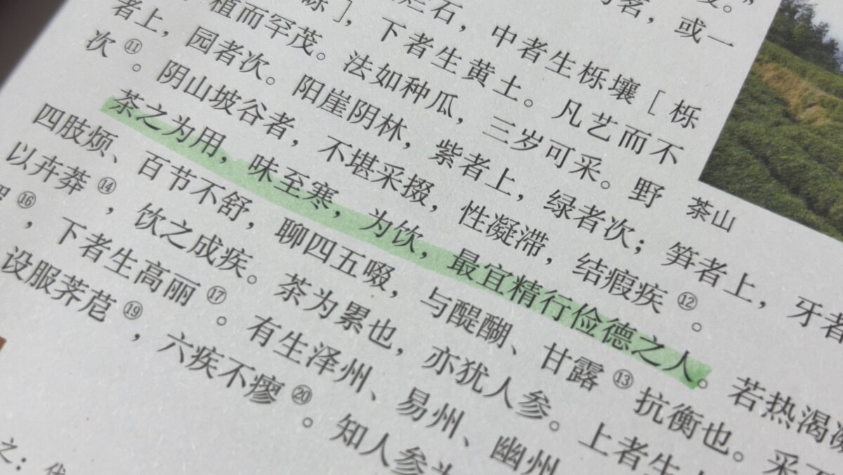 “茶之为用,味至寒,为饮,最宜精行俭德之人”