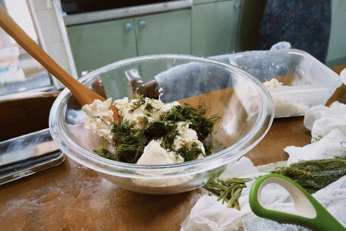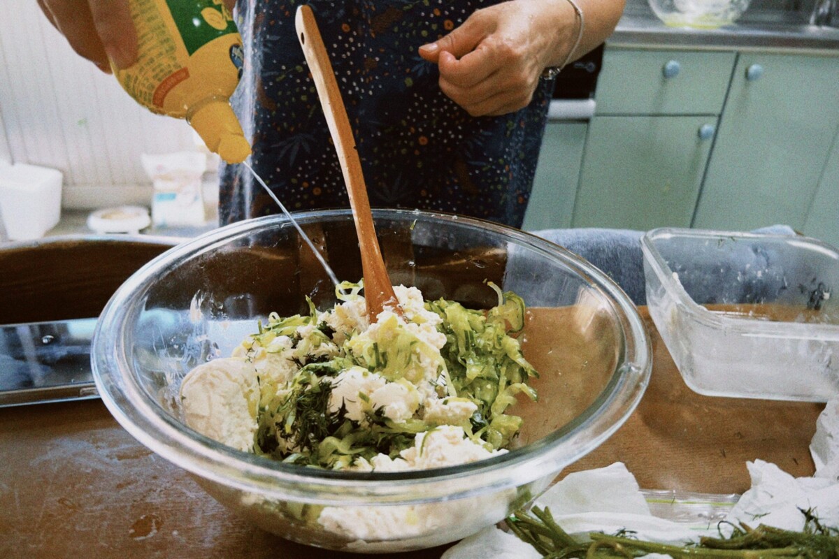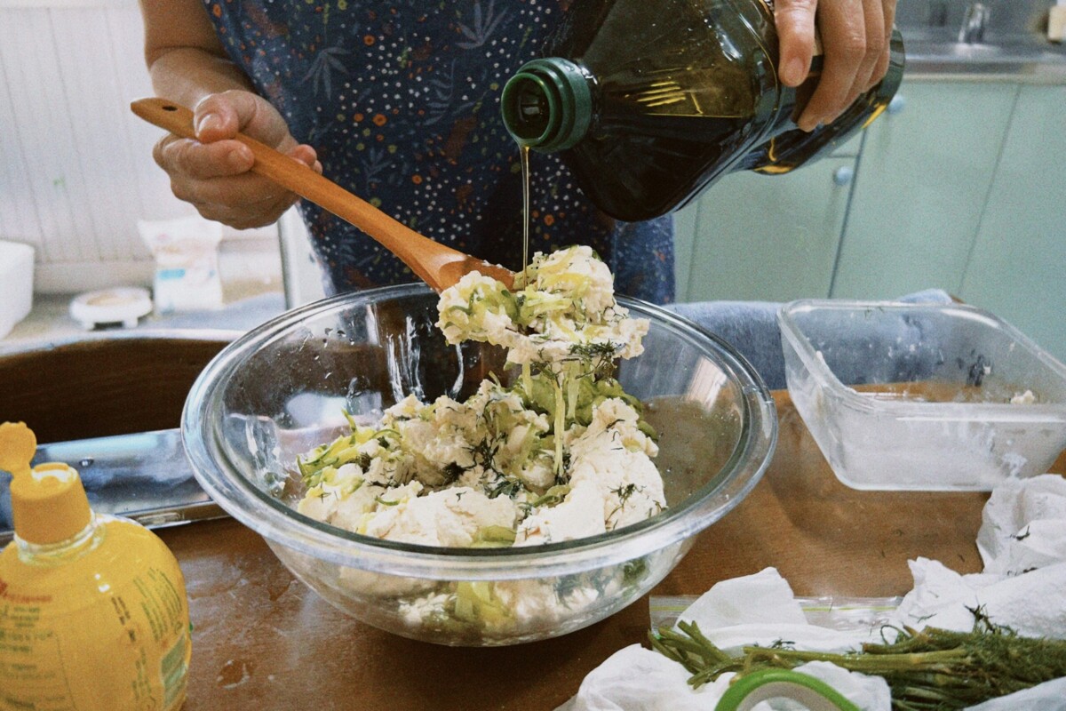 요거트 준비 완료. 차지키소스 만드는 건 아주 간단해요. 잘게잘라서 그릭요거트에 넣고 섞으면 끝!