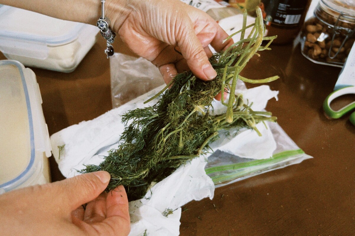 냉동실에 쟁여뒀던 딜은 가위로 잘게 썰어서 투입.