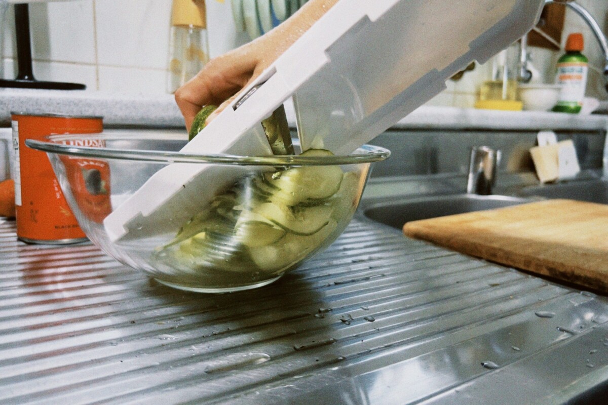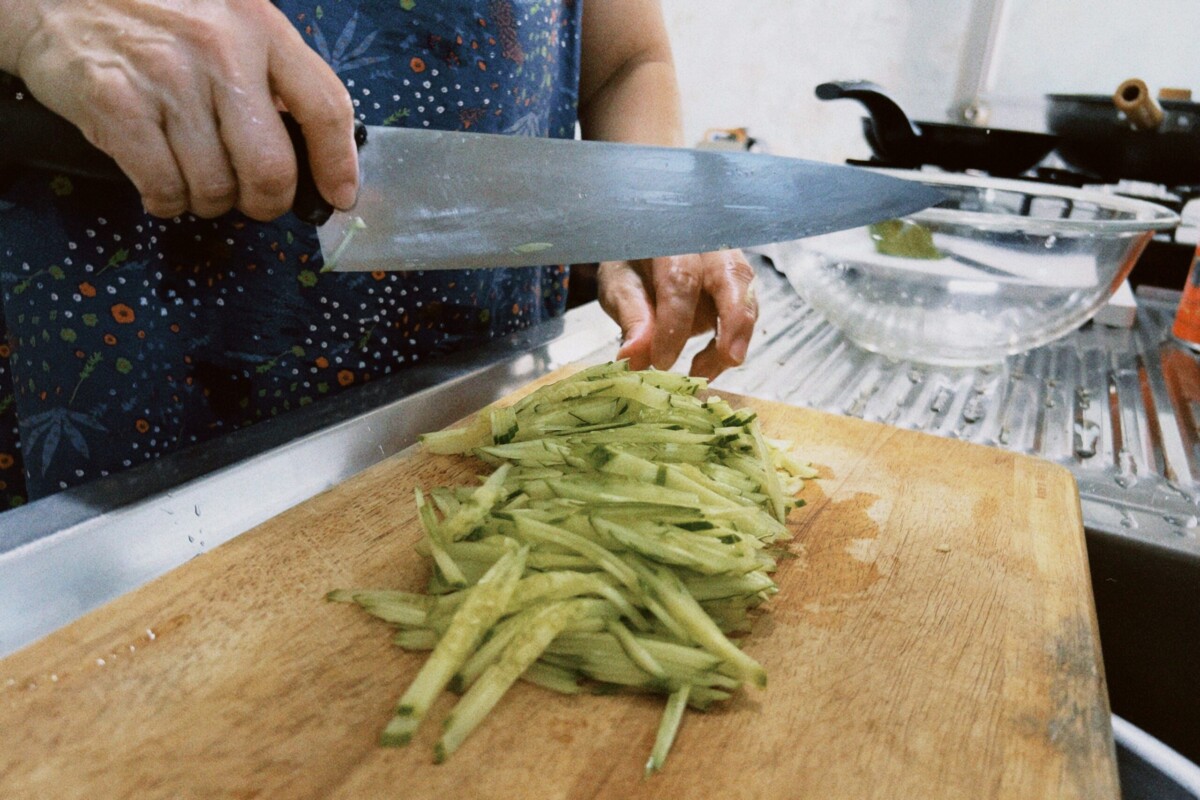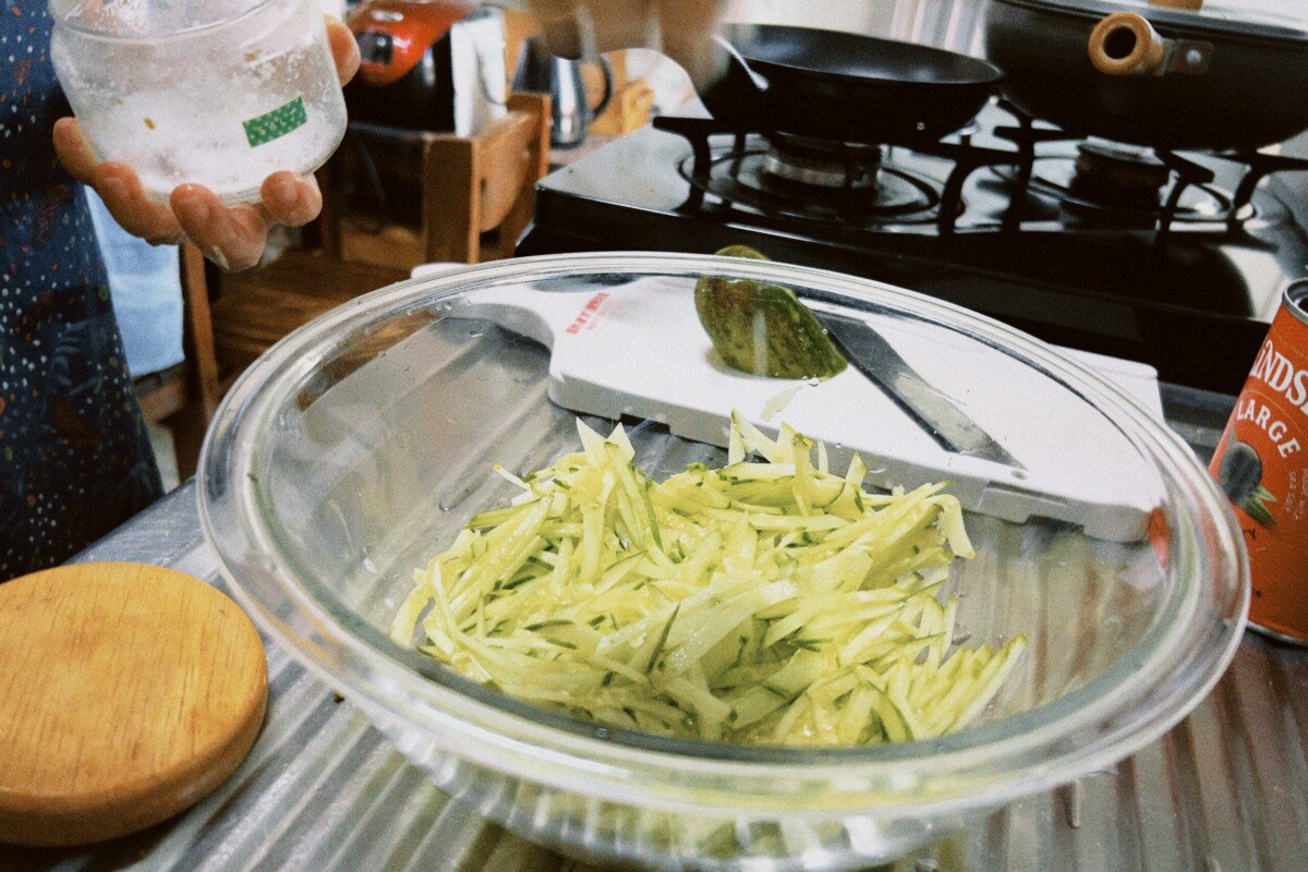 오이는 잘게 채썰어서 소금에 절여 물기를 쫙 빼서 그릭요거트에 투입.